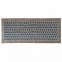 Alfombra de poliester/chenille por arriba y caucho por debajo. Pensadas para la cocina, baño, dormitorio. Se puede lavar a mano con agua fria y jabon neutro.