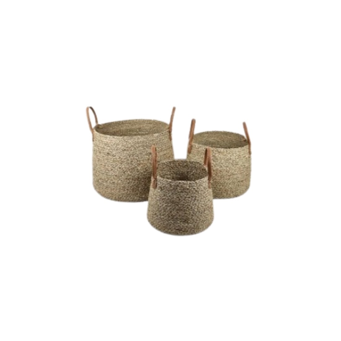 Canasto Seagrass set x3 Asas de Ecocuero Cod.234746