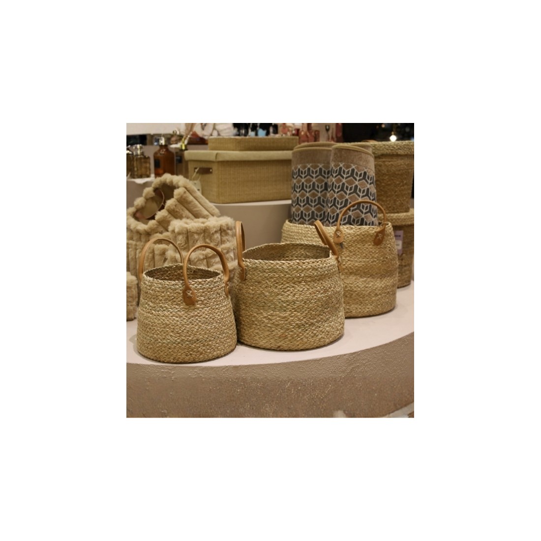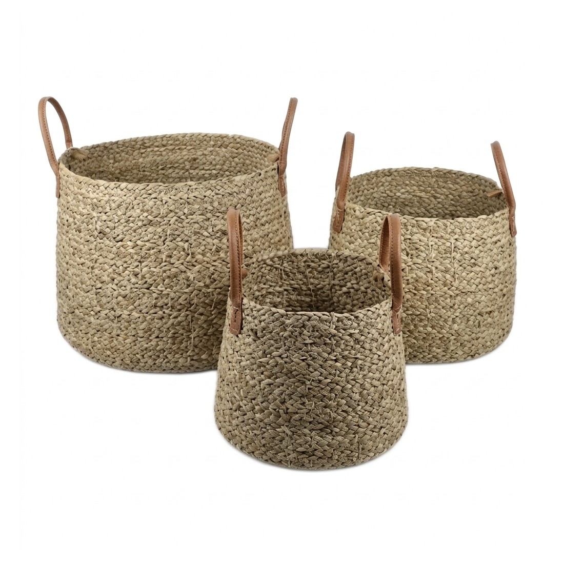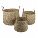 Canasto Seagrass set x3 Asas de Ecocuero Cod.234746