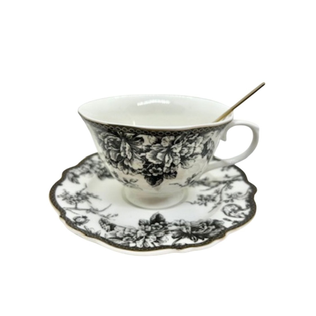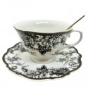 Taza de Ceramica de Té con plato y cuchara - Color Negro